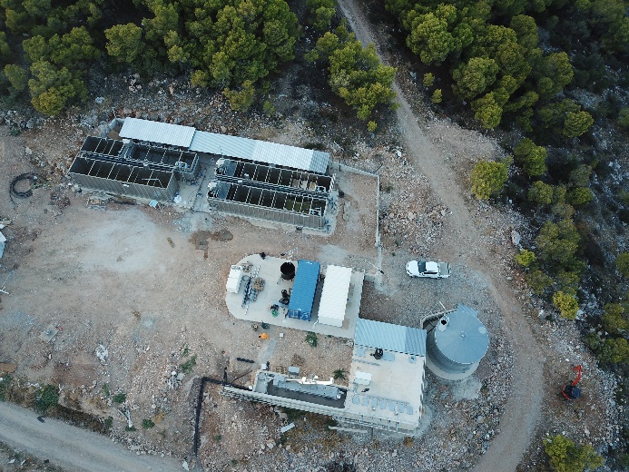 The MBR has three independent lines with capacity 750, 750 and 1500 equivalent people each to cover winter and summer needs when the island population increases. Each line has SINAP 80-120 modules installed in it.